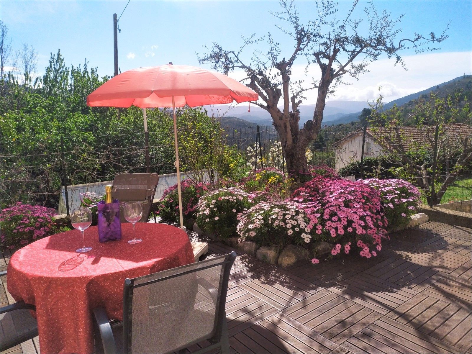 Studio tout confort de 26 m2, indépendant avec terrasse privative dominant la vallée du moyen pays niçois, en rez de jardin d'une propriété. Ce studio a un accès direct à la piscine partagée de la propriété de 11m x 5.50 m avec nage à contre courant pour les massages.